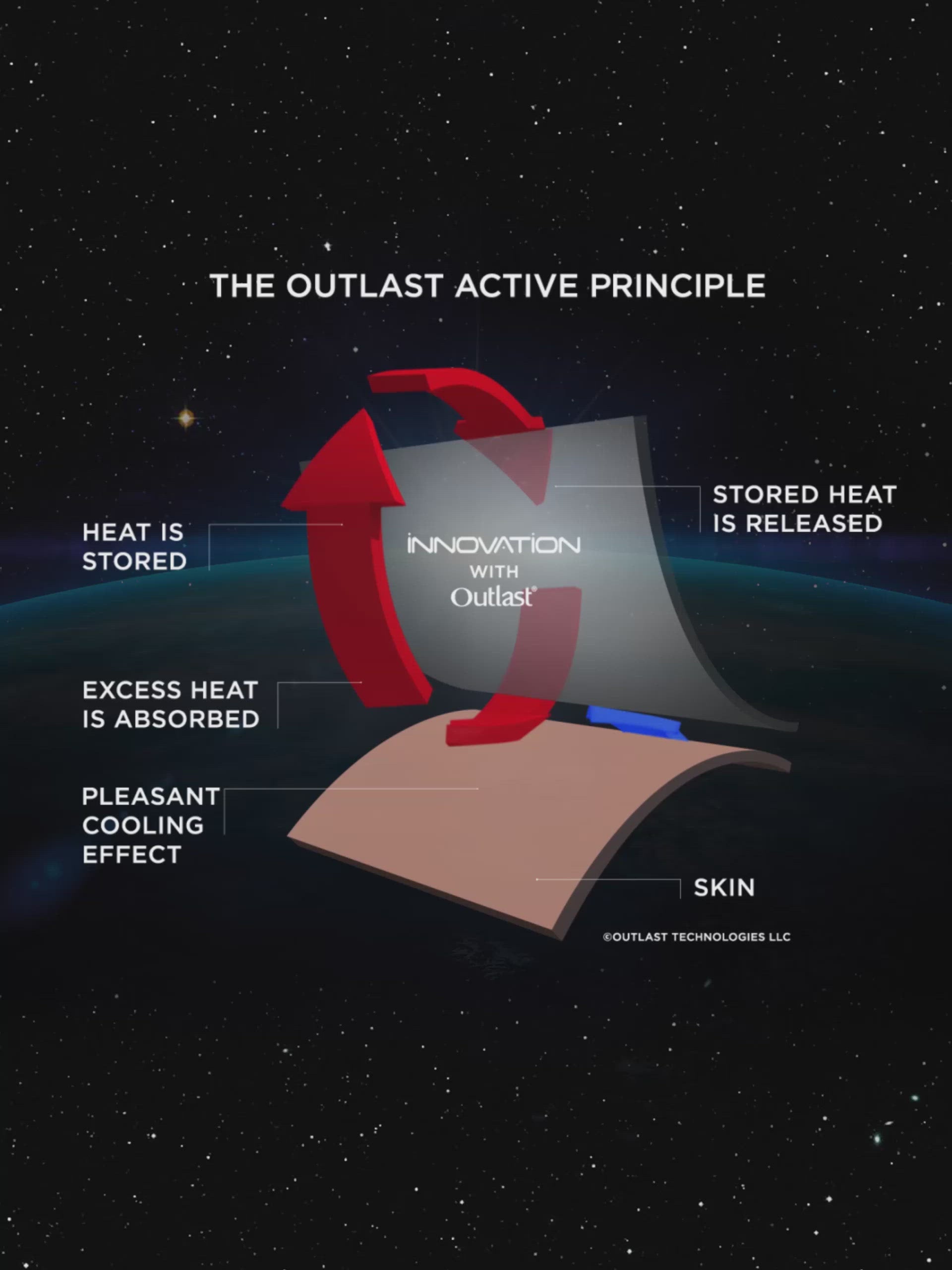Innovation armazena o calor corporal excessivo para o voltar a distribuir em caso de necessidade, proporcionando condições de temperatura e humidade ideais e constantes junto à pele, evitando o desconforto das mudanças bruscas de temperatura